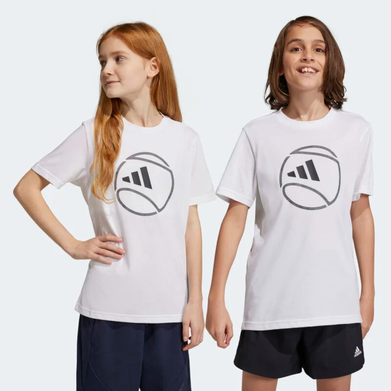 Watch them show their love for the game. This adidas cotton-blend tee for kids displays a tennis-related graphic on the chest. Its soft, single jersey construction and moisture-wicking AEROREADY will keep them comfortable on and off the court.