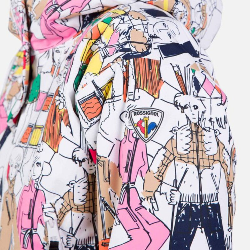 A chic and celebratory merging of alpine and urban life, the women's Rossignol Sublime Stretch Ski Jacket is part of French designer Jean-Charles de Castelbajac's latest collaboration with Rossignol. Featuring a vibrant mix of all the drawings he created for the collection, it keeps you comfortable in any condition with low-profile insulation that keeps out the cold and fully seam-sealed waterproof protection that keeps out the wet. Easy stretch translates to easy movement as you carve down the mountain in JCC style.